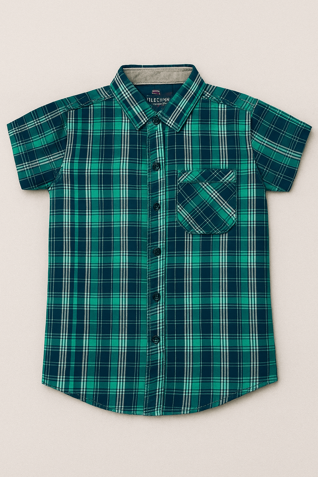Features a stylish combination of green, navy blue, and white plaid, creating a modern yet classic look.