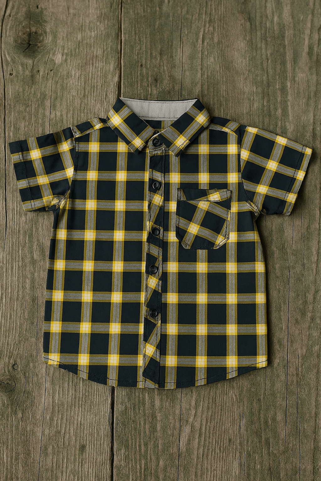 Black and Mustard Gingham Checkered Shirt with Front Pocketย Product Details: Design & Pattern:Featuring a...