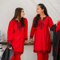 Shirt: Red, Cotton, Embroidered